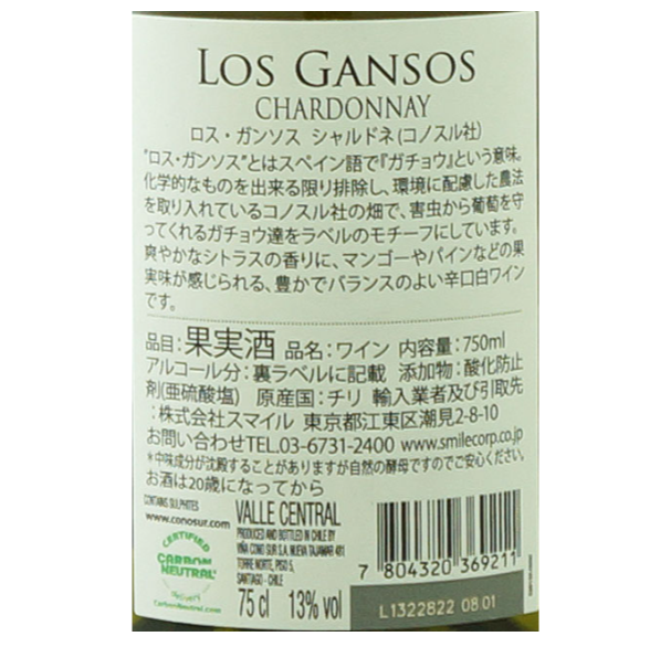 | ワイン名 | Los Gansos Chardonnay / Cono Sur |